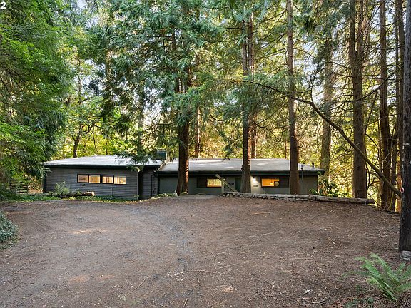 Hidden gem ready to make sparkle. MidCentury home in wooded retreat setting overlooking forest and creek. Almost an acre, has fruit trees and vegetable gardens. Great room w views has open concept kitchen. Primary bedroom w ensuite bath on main level. Lower level w large bedroom/gathering space/media room and dedicated office. Quiet neighborhood near city bus lines, multi-use trail, botanical garden. Home and property offers unique opportunity for privacy and space within a wonderful city. [Home Energy Score = 6. HES Report at https://rpt.greenbuildingregistry.com/hes/OR10206105]