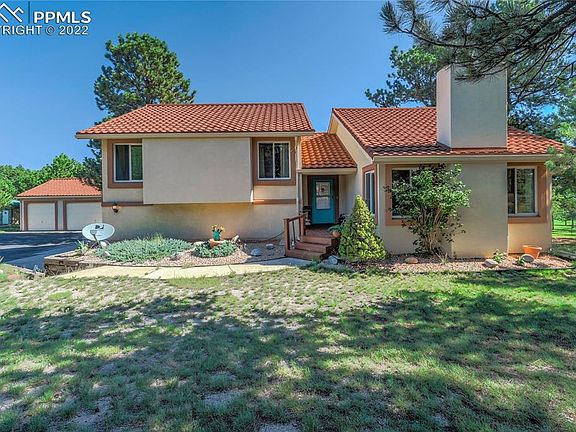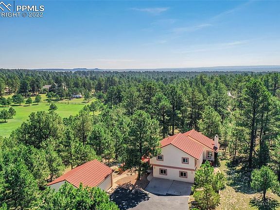 Remodeled home in the very desirable Black Forest with almost 5.5 acres of the perfect mixture of lush green meadows and mature Ponderosa Pines tucked on the corner of a quiet cul-de-sac! Located in a horse and outbuilding friendly community with fantastic access to the amenities of Falcon and an easy commute to Colorado Springs or Denver. The gorgeous grounds have been meticulously maintained and trees have been fire mitigated. Newer low maintenance stucco exterior. Very high end clad metal roof made to look like a tile roof. Newer asphalt driveway. 4 car detached garage. RV electric hook-up and parking area. The most peaceful outdoor entertaining spaces with multiple recently stained decks overlooking the park like and serene grounds. The great room has vaulted ceilings, wood accents, tons of large windows w/ great natural light, an energy efficient wood stove w/ tile surround. Updated kitchen open to the great room and dining room with slab granite counters, stainless appliances and refinished hardwood floors with a walk-out to the back deck. Three upper level bedrooms with two baths. The master bedroom is spacious and features a private master deck, walk-in closet and private fully renovated bath with soaking tub, new tile, new light fixtures and slab granite counter. The other second level bath has been totally remodeled as well with new tile, marble counter, marble floors, new light and plumbing fixtures. The lower level features a family room w/ walk-out to the back of the home and the spacious fourth bedroom w/ walk-in closet. The furnace was replaced in 2021. Newer energy efficient vinyl windows. Both bathrooms remodeled in 2020. Zoned for horses and outbuildings. No HOA. One of the most breathtaking lots in Black Forest with the perfect mixture of trees and meadow with level ground perfect for horses. The owners have taken amazing care of this property. See this home quickly!
