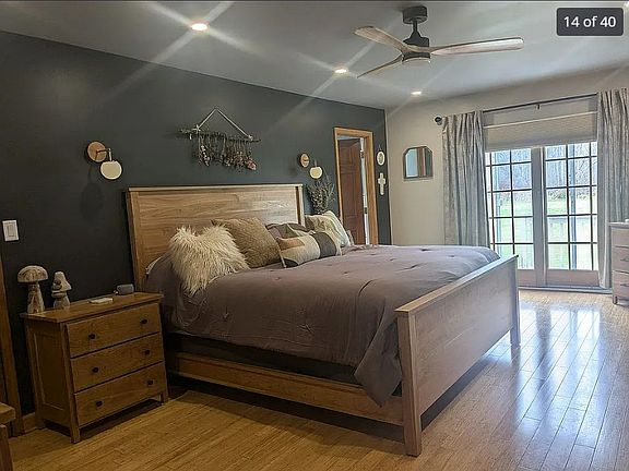 Welcome to this beautifully updated 2,765 sq ft ranch offering the perfect blend of elegance, functionality, and privacy. Situated on 4.7 acres with both an attached heated 2-car garage and a detached 5-car garage, this home is ideal for anyone seeking space, comfort, and exceptional craftsmanship—more than $300,000 in upgrades—just 2 minutes from the school campus. Less than 10 minutes away, Fredonia—with shopping, dining, and conveniences—is minutes from multiple private K–8 schools. Step into the spacious foyer where you're greeted by vaulted ceilings, striking checkered porcelain tile, and elegant stained pillars. Beyond the entry lies an impressive formal dining room with custom bordered red oak hardwood floors, large enough for even the most significant gatherings. The eat-in kitchen, fully updated in 2022, includes: * Two-tone shaker cabinetry * Granite countertops * Stainless wall oven/microwave combo & gas cooktop * White marble backsplash * Black granite sink * Neutral ceramic tile flooring * U-shaped layout with abundant counter space * Comfortable dining area for everyday meals * A newly installed Marvin sliding glass door leading directly to the back deck, offering excellent natural light and smooth indoor–outdoor flow The sunken living room features cathedral ceilings, hickory flooring, and a cozy gas fireplace. Three rooms—including the office/4th bedroom—feature cathedral ceilings and charming window seats. The second full bathroom features quartzite double-vanity sinks, with the toilet and shower tucked away behind a separate door. Laundry room and bath. The spacious master bedroom—was completely renovated in 2023 and includes: * A NEW Marvin sliding glass door overlooking the backyard * A custom closet system with built-in shelves and organized hanging space * A luxurious ensuite with double granite vanities * A large custom walk-in shower featuring a built-in seat, marble mosaic tile flooring, granite & porcelain tile walls, dual shower heads, and a hand wand * The finished full basement offers Multi-purpose room with projector and 10-ft movie screen * Large whiteboard wall— * Second laundry