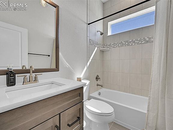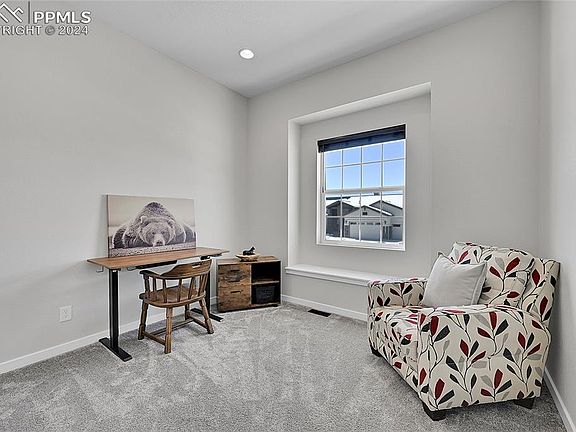 This stunning Classic Homes Paradise ranch-style model home is located in the desirable Flying Horse community of Colorado Springs. This meticulously designed property offers 4 bedrooms, 3 bathrooms, and an oversized 3-car garage. As you enter the home, you are greeted by a tastefully designed entrance foyer with laminate plank floors, setting the tone for the elegance and style that awaits you as you enjoy the seamless flow of this popular floor-plan. The main level features a spacious living room with a stacked tile fireplace, perfect for cozy evenings with family and friends. The kitchen is a chef's dream, boasting KitchenAid appliances, and a beautifully wrapped black granite kitchen island. The attention to detail is evident in every aspect of the design, from the beautiful cabinetry with pullout trays, to the luxurious quartz countertops. The primary bedroom is an amazing retreat, offering a cozy serene space, and an ensuite featuring a large walk-in spa shower, and double vanity. The basement features a wet bar, two additional bedrooms, a bathroom, and lots of space for entertaining family and friends. There is also the opportunity to finish a 5th bedroom, and 4th bathroom in the basement. The covered patio leading into the backyard is perfect for relaxing after a long day. The Pike’s Peak views from the front patio are truly breathtaking, adding to the overall appeal of this exceptional home. Located in the prestigious Flying Horse community, residents have access to a range of amenities. The Club at Flying Horse membership offers everything you are looking for, from fine dining, to the private Tom Weiskopf Signature Flying Horse 18-hole Golf Course, an amazing fitness center, swimming pools, and a resort spa where you can relax and unwind. This home with its impeccable design, luxurious features, and desirable location, offers the perfect combination of comfort and sophistication. Don't miss your opportunity to make this extraordinary house your new home.