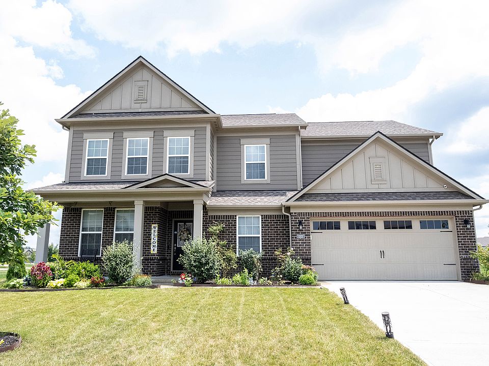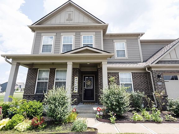 Gorgeous house on an awesome lot!! Stunning elevation with brick wrap and covered porch. Huge covered patio looking onto the Community pool and expansive backyard where the lot blends into a yard that is maintained by the HOA, completes the curb appeal of the house. You will love the space in this Everett floor plan of Lennar. Spacious foyer has a big office room, upgraded with French doors on the left and leads to a spacious great room with a gas fireplace and a mantle. Huge gourmet kitchen has tons of 42" white cabinets and SS appliances, wall ovens, built-in range, walk-in pantry, quartz counters and a big center island with breakfast bar. Next to the kitchen is the extra large morning room filled with windows and a dramatic vaulted ceiling, which can add up as a great entertaining space. Built-in Family Organizer(mud room), is a boon, right off garage entrance. Spacious primary bedroom has a tray ceiling and beautiful backyard views. Deluxe shower, dual sinks and s huge walk-in closet adorn the primary bathroom. A nice and big loft connects the remaining 3 large bedrooms, laundry room and second full bath. The 2 car finished garage has a huge extra storage area. Top rated Fishers' schools, minutes from I69, Hamilton town Center, tons of shopping, groceries and restaurants. Blink and you will miss it!!!