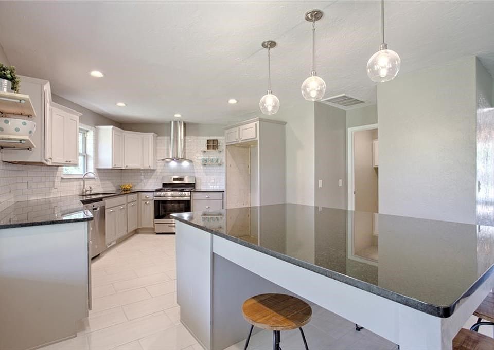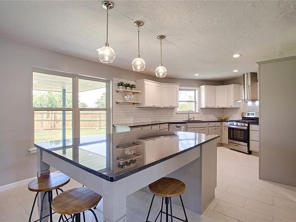 WOW!! Check out this amazing remodel in NW OKC. This 4 bedroom 3 full bath home has been completely remodeled with custom finishes throughout. A truly open concept home is revealed once you step inside this amazing home featuring beautiful, real hard wood floors throughout the formal dining and living areas. The living room features a cozy fireplace, with built in shelves that opens up to a large, modern kitchen with over sized island/eating space with tons of storage, SS appliances, industrial shelving and stunning 3 cm granite counter tops. Relax in the over-sized master suite with spa-inspired master bath with dual sinks and shower. Secondary bedrooms are large with spacious closets. Other features include recessed lighting, extra storage underneath stairs and custom, USB plugs in master BR, kitchen and loft. bathroom vanities . The expansive backyard is great for entertaining and plenty of space for a swing set and pool. Brand new roof, and new HVAC upstairs, updated elect system.