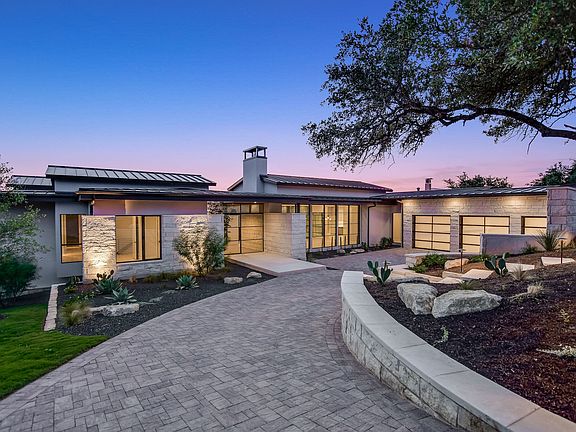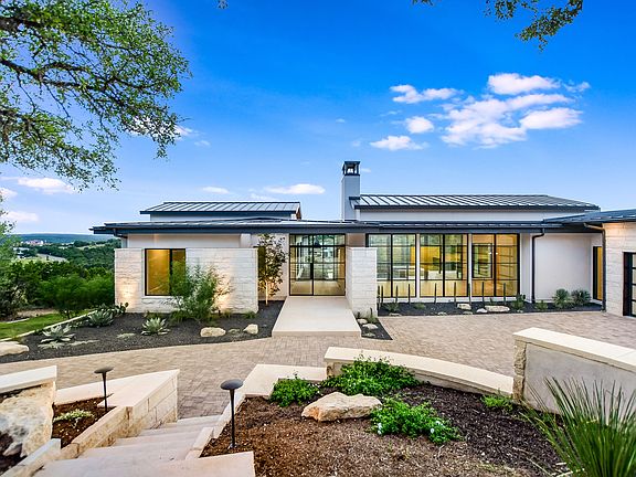 This hill country contemporary house is intimately tied to its surroundings. The public spaces and some of the rooms overlook the outdoor living and pool while the pond and vistas act as the backdrop. The stone, stucco and metal roof house meanders around the existing trees found on the property. The slightly sloped site allows for an incredible view and a lower habitable level of bedrooms and game room to be tucked under part of the main level and access to a lower yard.