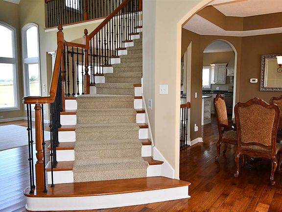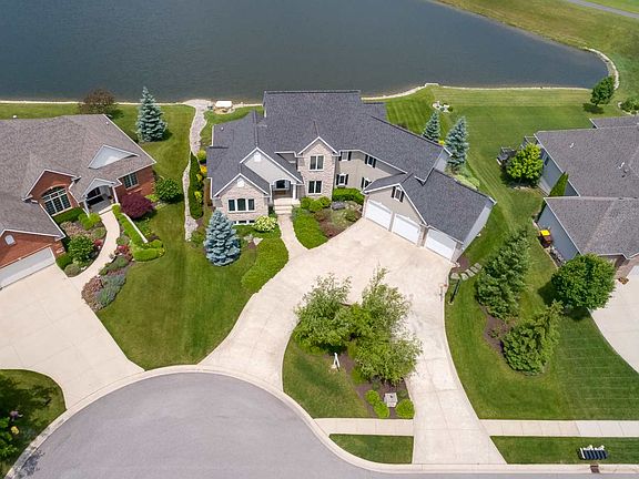 Spectacular Custom (Maggos) Aboite home on the cull-de-sac that overlooks the water. The stunning curb appeal is complete with stone facade, courtyard style garage (with epoxy coated floors), 2 service entrances and circular drive. Solid wood floors adorn the main level. Tucked away is the main floor master and den (could be 6th bedroom). Exquisite en suite with high double vanities, garden tub and tiled shower. The two story walk in will accommodate all seasons. Open staircase leads to the over sized bedrooms private baths and loft. Gorgeous custom maple (Amish built) kitchen includes granite, commercial dual energy stainless range, breakfast room and bar. The custom features continue to the walk out lower level with bar, billiards, stone fireplace, guest en suite. Plenty of space for out door entertaining overlooking the water, with fire-pit, hot tub and paddle boat dock. Anderson windows. home is pre-plumbed for whole house generator and central vac. Surround system in lower level. Extensive professional landscape and hardscape. Outstanding value.