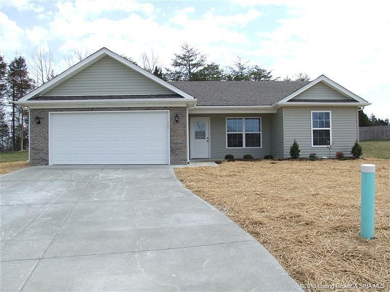 New construction. 100% Financing available through Rural Housing. Premiers newest floor plan the Paisley. Great room offers 10ft ceiling, open kitchen with breakfast bar, master bedroom offers his and her walk-in closets. A nice covered patio and a 2 car grage. 10year RWC Warranty comes with home too. Sq. Ft. and Rm. Sz. Approx. Owner is a licensed Real Estate Agent Indiana. Pictures are of a similar home.\n\nInformation Deemed Reliable But Not Guaranteed. Information provided by the Southern Indiana REALTORS® Association, Inc. © 2010 SIRA Multiple Listing Service. All rights reserved. Brokered And Advertised By: RE/MAX FIRST Listing Agent: Billie Olson