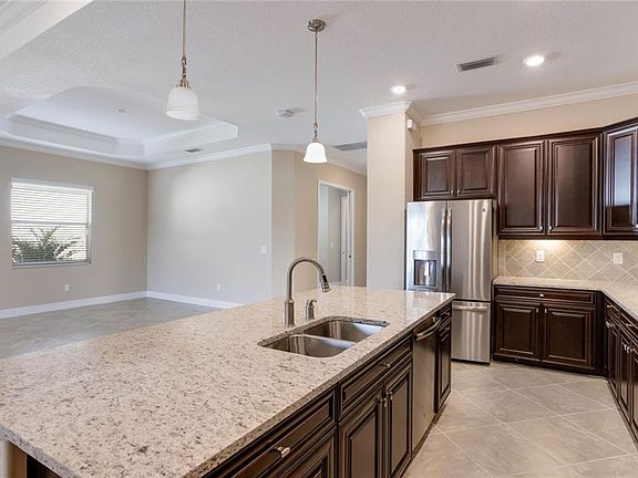 - Interior Features: High Ceiling(s), Master Bedroom Downstairs, Crown Molding, Walk-In Closet(s), Window Treatments, Open Floorplan, Solid Surface Counters, Solid Wood Cabinets, Kitchen/Family Room Combo, Tray Ceiling(s)