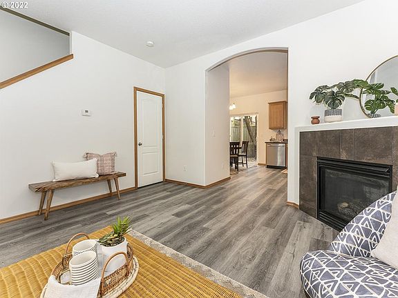 3 Bedrooms and 2 and 1/2 Bathrooms. The unit on the right has been updated with new luxury vinyl plank flooring and recently replaced appliances. Great owner occupant unit. Features, an open floorplan, gas fireplace in the living room, half bath on the main, 2 bathrooms upstairs. One car attached garage with w/ d hookups. Washer and Dryer in right unit are included. Flag lot on dead end street. Clean and ready to be moved in! Tenants are responsible for all utilities except garbage. Upon move in, first month's and 1 month of security deposit are due. Rent i due by the 7th of each month.