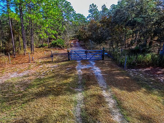 10 Acres completely fenced and tucked away for privacy with 539 ft of frontage on Thrasher, a paved road. Five minutes to US 19 to stores; 15 minutes from waterfront. This property offers much from a 1996 Jacobson Double Wide 3 bedroom home in good shape and situated center of the 10 acres; Roof 2013; A/C 2011; new stairs and landing entry. 24' x 20' Carport; 16 x 12 Utility wood shed with electric and water. Open covered structure with electric and water; small cross fenced Corral; raised free standing deck with electric pole; shooting/target area with a 100' backstop. Many areas on land are plumbed with electric and water. GREAT property; don't miss this opportunity to make this yours.