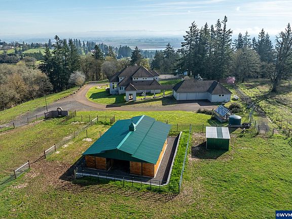 Imagine yourself relaxing in this beautiful 2 story 3884 square foot home on top of the foothills of Willamette Valley w/stunning mountain views! This 43.15-acre property boasts of being a perfect horse owners dream. The sprawling property provides a horse stable/barn, round pen, green house, a creek, reservoir/pond, riding trails & much more. The residence harmonizes modern luxury w/rustic elegance. Anderson French doors, Viking appliances, heated floors, Lg WIC, & possible studio in the garage.