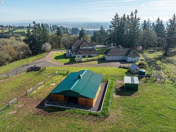 Imagine yourself relaxing in this beautiful 2 story 3884 square foot home on top of the foothills of the Willamette Valley with stunning mountain views! This 43.15-acre property boasts of being a perfect horse owners dream. The sprawling property provides a horse stable/barn, round pen, a green house, a year-around creek, reservoir/pond, riding trails and much more. The residence harmonizes modern luxury with rustic elegance. Anderson French doors, Viking appliances, heated floors, a large walk-in closet, just to name a few. Saddle up and come take a ride to this gorgeous and spacious home..