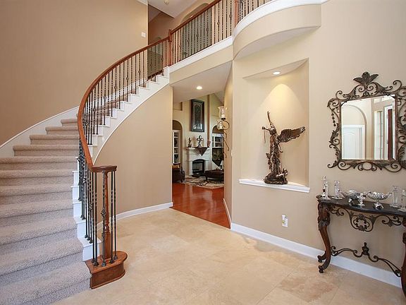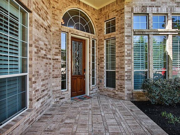 Stunning two story with beautiful stone, brick and stucco exterior. Updates throughout: Wrought iron spiral staircase, extensive travertine and wood floors, plantation shutters, crown molding, rounded corners, 19 ceilings. Gourmet kitchen with rich wood 42 cabinets, large center island, gas cooking, work desk and stainless appliances. Great floor plan with both formals, den, study, game room upstairs and media room. Three car garage and covered back patio. Home Didn't Flood. Roof 2015.