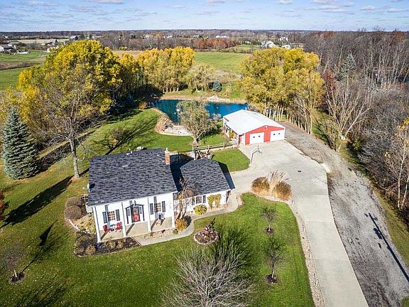 Beautiful 2,200+ two-story home sitting on 1.7 acres w/ fully stocked pond and 34x30 outbuilding - country feel w/ convenient location just minutes from I-69 - 3 bedrooms, 2 full baths, and fully finished basement - large living space just off of the main entrance, flowing into the family room - spacious kitchen is just beyond the family room (newer appliances included) - convenient dining area is connected to the kitchen - three generously sized bedrooms on the upper level - master bedroom has ensuite bath - lower level is amazingly cozy with a fireplace highlighting this huge living space - extra room is just off of living space and can be utilized as an exercise room, recreation area, or guest quarters - additional features are the nail salon/spa area built into the garage (this can easily be switched back to make it an oversized two-car garage), basketball hoop, beach area, and extensive professional landscaping (see picture book in house of landscaping in bloom), new AC and heat pump (w/ optional ceiling cable per room) in past two years, all new garage doors (including barn), six panel solid doors throughout, new flooring on main level, new hardware throughout, fully stocked pond w/ aerator and waterfall, large outdoor back patio w/ gazebo that remains, fully heated/insulated barn w/ extensive storage throughout, new metal roof, air piping, and 220 amp service.