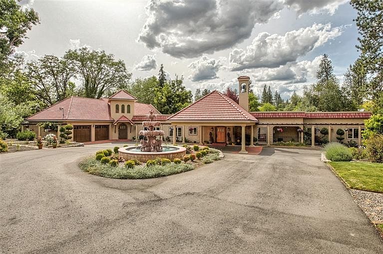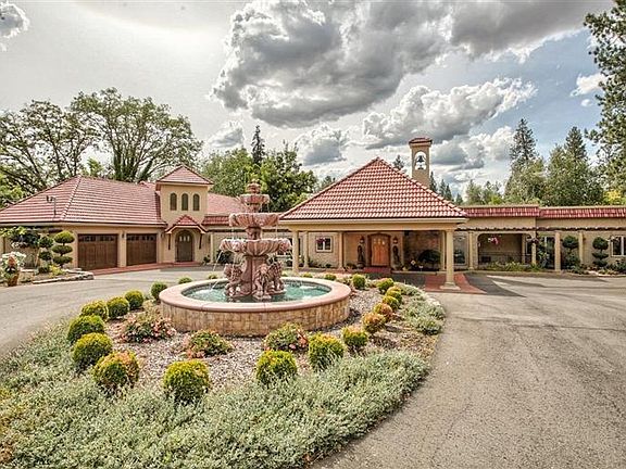 Exquisite Tuscan style estate on the Rogue River! Tree lined driveway leads you to a courtyard with water feature & Porte-cochere to keep your guests out of the weather. Rogue River views greet you from the moment you walk in the front door. Large Chef's kitchen with custom cabinets, granite counters, commercial grade appliances & breakfast nook. Addt'l prep kitchen w/huge pantry off of large formal dining room that offers sweeping views of the river. Master suite w/river views, walk-in closet & master bath w/sauna, double vanity, large tiled shower. Enormous great room w/vaulted ceiling, built-ins & doors that lead to patio, is an amazing area for entertaining. Large patio overlooks the 265 feet of River frontage & gives you access to great fishing holes in the valley! 5 oversized fully finished garages w/heavy power & large doors easily accommodate boats, cars, rafts, etc. 2 detached storage buildings, plenty of paved parking. This is truly the place you have been dreaming of!