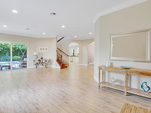 Welcome to your dream home in the gated Paloma community, located in the heart of Palm Beach Gardens. This stunning residence features an open, bright floor plan, with a double door entry into an oversized living room and glass sliding doors to a serene backyard oasis. The main level includes a warm dining room, a high-end kitchen with an eat-in counter, breakfast nook, and a family room opening to the pool area. A versatile bedroom and full bath serve as a guest suite or office, with mudroom access to the three-car garage.Upstairs, you'll find a play/media room, a luxurious master bedroom with onyx countertops, three additional bedrooms, two bathrooms, and a laundry room. The cozy balcony overlooks the pool, hot tub, lounging area, outdoor shower, and lush landscaping. Highlights include porcelain floor tiles, soundproofing, hardwired Ethernet, and full impact doors and windows. Paloma offers a resort-style pool, lounging areas, outdoor showers, a playground, clubhouse, gym, and paths for strolling, walking, jogging, and biking.