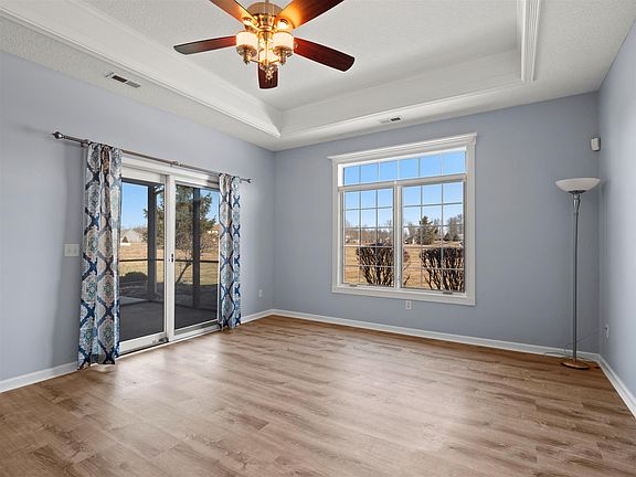 Come see the added amenities in this maintenance-free condo on nice cul-de-sac with oversized 2-car garage. Coves of Carroll Creek Condo association surpasses all the others with benefits. Lovely club house with small exercise area, exterior maintenance included in your quarterly dues includes: snow removal, mowing, fertilization, roofing, exterior painting, and exterior window washing. This beautiful 2 bedroom, 2 full bath condo features an enclosed porch, all new luxury vinyl plank flooring in the great room , dining area, kitchen and en suite. New $13,000 updated owner's bath by Colvin with walk-in shower, new sink, lighting, fixtures and flooring. Terrific kitchen with lots of counter space, breakfast bar with added pendant lights, new appliances within the last 2 years that remain, and be sure to see the vent extension that comes out from the microwave. Separate laundry room with brand new washer. Added trim package to the step ceiling in the great room. Updated paint throughout. Live well and within your budget in this like-new condo. Some photos have been digitally staged with furniture but accurately reflect the structure.