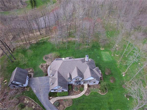 Spectacular waterfront Payne & Payne on a quiet cul-de-sac with 5 acres of private, wooded beauty on the Chagrin River! Everything about this home is bright and airy with neutral décor and walls of brand new windows that provide gorgeous views from every room. Double front doors open to the foyer, formal living room, and two story great room with a floor-to-ceiling stone fireplace featuring a solid wood mantle, TV cupboard, and new wood floors. The gourmet eat-in kitchen offers custom cabinets, granite counters, recessed lighting, and island. French doors lead to the new patio and manicured lawn where you can enjoy this gorgeous waterfront property, take the canoe for a paddle, fish, or simply enjoy the panoramic views of the Chagrin River. Tranquil 1st floor master with a coffered ceiling, bayed sitting area, walk-ins and a luxurious glamour bath. A half bath, laundry room, and access to the attached 3.5 car garage round out the first level. Upstairs, a full jack-and-jill bath separate two spacious bedrooms and the third has its own en suite bathroom. The perfect space for your future man-cave, theatre room, gym, or office, the basement offers another 2,165 sqft, plus a separate carriage house/garage for additional storage. Nature-lover's paradise w/ countless updates including a new furnace, hot water heater, well pump, wood floors, staircase railings, patio, walk-out doors, fireplace, counters, windows, whole house generator operated with a switch in the garage, and more!