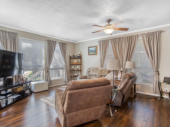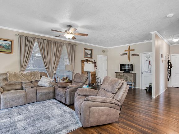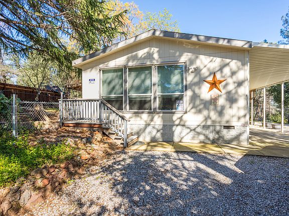 This 2 bed/2 bath manufactured home (2013) sits on a private and large area. You'd never know that you were in a mobile home park! Enter to find an open floor plan and bright kitchen with everything you need. The appliances stay, as do the washer and dryer. Relax and gather in the spacious living area. Outside, unwind and dine on the expansive Trex deck overlooking lush green lawns and shaded by beautiful trees, including lemon and nectarine trees. A large shed with power provides ample storage space for tools and more. Located in a peaceful neighborhood, residents here enjoy access to a community pool for leisurely afternoons. Experience the tranquility and convenience of this hidden gem. Envision yourself calling this place home!
