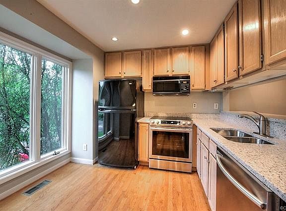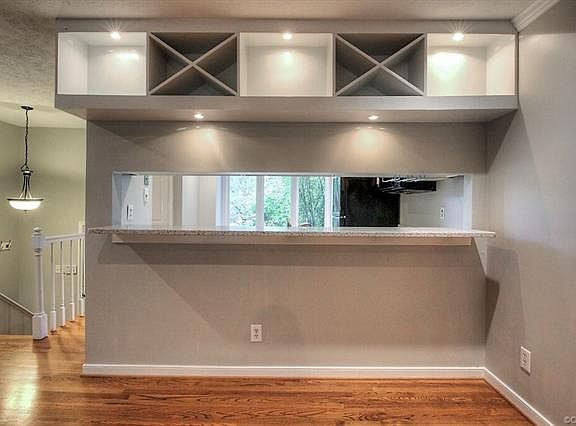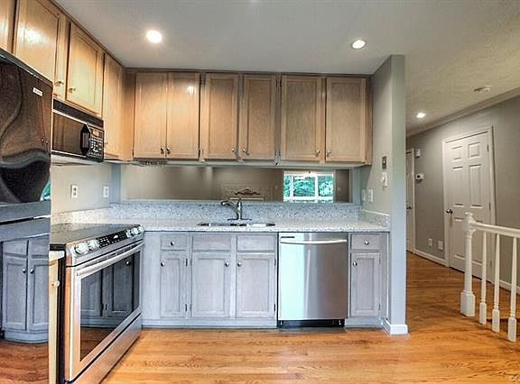 Immaculate 3 level Bay Cove home with many renovations prior to market. Upgrades include new quartz kitchen counters, powder room completely remolded, freshly painted and many more. This home has three bedrooms each with a full bath, on a private wooded lot. Beautiful hardwood floors on the first and second levels along with two family rooms each with wood burning fireplaces! There are only 12 homes in Bay Cove with an additional 10' x 12' vaulted room on the main level, perfect as a dining or Morning Room. The main level has an open concept and ample natural sun light. The second level has two vaulted bedrooms with hardwood floors and each with full baths and large closets. The Lower level is perfect for a roommate, teens or in-laws. The lower level features a bedroom with full bath, wet bar, and a second family room with wood burning fireplace with and access to a 10' x 12' private patio overlooking the wooded lot. A short walk to the Bay Cove pool and enjoy the privileges to the lakes of the Wild Lake Association. Minutes to the interstates, shopping, restaurants and top schools. Appliances sold "AS IS" & Chimney and fireplace no know defects sold "AS IS"