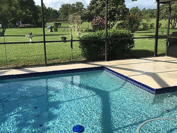 Location, location, location! Welcome to the desirable neighborhood of Barony Woods. This 3 bedroom 2.5 bath is located on over half an acre that backs up to a farm with a beautiful view. Light, open and airy with four sliders spreading across the rear of the home letting the outside in. Newer stainless steel applicances, counters, A/C, water heater and garage screens. Large screened in pool/lanai area with newer screens, a half bath and outside shower. Home also has a sprinkler system on a well No HOA fees and minutes to 589. Call owner directly at 352-263-3098 and save thousands. For details and showing call Sharon.