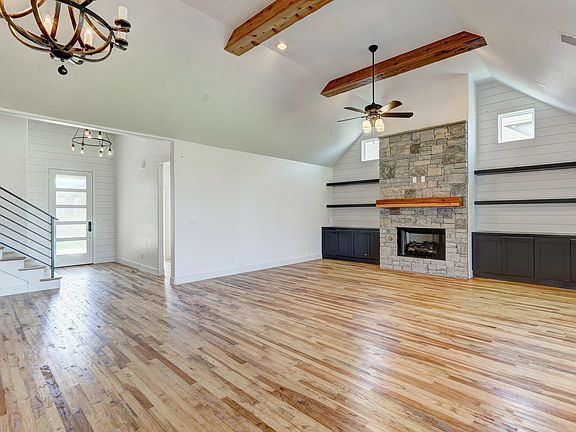 Modern Farmhouse by Cozort Homes! Open concept, shiplap accents, fantastic light fixtures, beamed ceilings, modern iron railing, sliding barn doors, designer finishes, beautiful built-ins, granite throughout. Flex room could be study or dining.