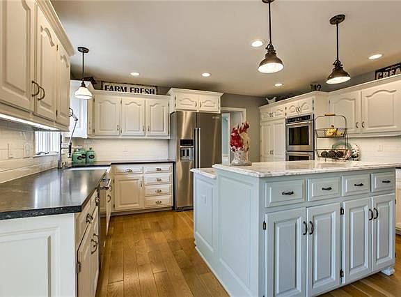 - Pantry, Partial Carpeting, Kitchen Island, Painted Cabinets