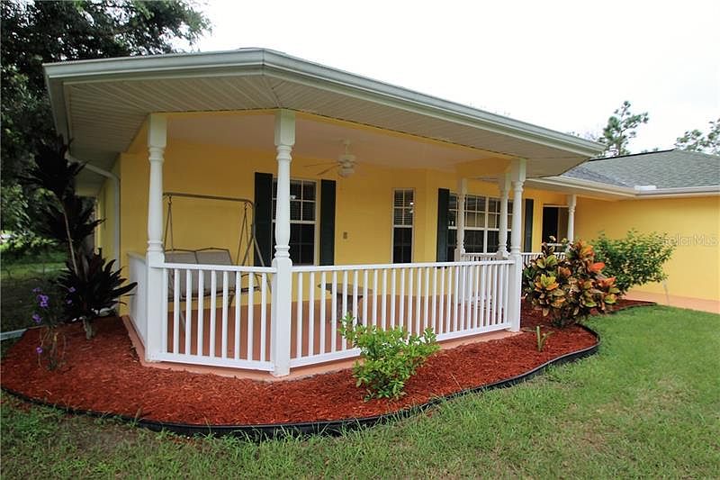 REDUCED!! MOTIVATED SELLER!! BRING OFFERS!! Charming 3 bedroom, 2 bath home in Gulf Cove. This Quality built home features a design unlike a typical Florida home. This unique home features an amazing 208 square foot front porch that is perfect for relaxing or entertaining, a wonderful kitchen with vaulted ceiling and an island, an air conditioned 170 square foot BONUS room, an outdoor patio deck, and a split floor plan with a cathedral ceiling in the main area. A new AC, newer hot water heater, new garbage disposal. whole home water filtration system, and individual water hose manifold system help give you peace of mind living. Situated on a corner lot in on a quiet street that backs up to a greenbelt, this home will not disappoint. There is also an OPTIONAL membership available with access to a nearby boat ramp and use of a park and pavilion for a nominal annual fee. NO HOA!! Close to shopping, restaurants, and area beaches, this home gives you all that Florida has to offer with the charm of a home from the North. Close to Rays and Braves spring training facilities and a NEW water park coming soon!!