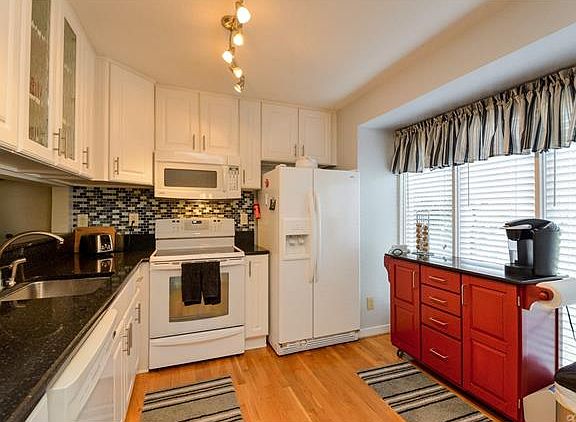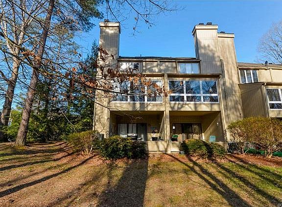 Immaculate 3 level END UNIT home with +/- $30,000 in renovations including new kitchen, painting, baths, HVAC & hot water heater & much more including security system & central vac. It offers 3 bedrooms all with full baths. Only 12 homes in Bay Cove have an additional 10 x 12ft vaulted Dining/Sitting Room. The main level features hardwood floors & crown molding. The Family room has a wood burning fireplace with a wood mantle and slate hearth that opens to the white kitchen that includes quartz counters, breakfast bar and pantry. Main floor rooms open to the vaulted dining/sitting room with columns overlooking the private woods. The powder room has granite counters and a vessel sink with decorative mirror. Second Level with two masters each with renovated full baths, vaulted ceilings & large closets. The lower level features a bedroom with full bath and a rec room with fireplace, wet bar & access to the private 10 x 12 patio. Perfect for roommates or possible teen/in-law suite. Short walk to the pool & lake includes lake privileges to Wild Lake. Minutes to interstates, shopping, restaurants & schools. Appliances sold "AS IS" & Chimney & Firplace no know defects sold "AS IS"