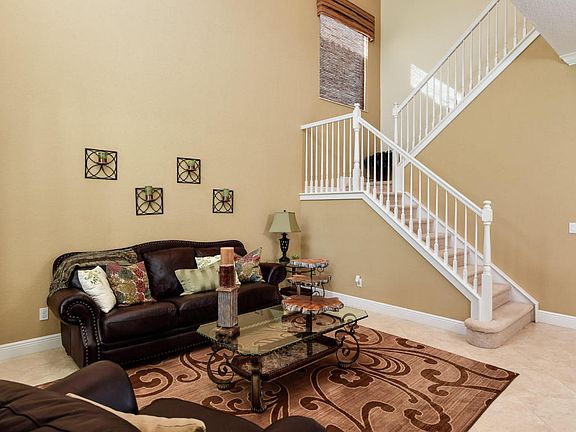 Beautiful Lakefront home with newer (2017) heated pool, giant splash pad, travertine patio, and retractable screens. Open floorplan Elisa model with numerous upgrades with designer touches. This large stunning 5BR/4BA/2CG home is spacious and open. The kitchen features eat-in nook, granite countertops, dark wood cabinets, upgraded stainless steel appliances and snack bar. Large upstairs master suite features large walk-in closet, separate shower and bath and dual counters and sinks. This home is complete with large bonus or upstairs family room, downstairs office or guest bedroom and bath, new 2 zone a/c units, custom plantation shutters, and impact glass throughout. Paloma is a family friendly gated community, minutes to highways, restaurants, shopping and good schools. Community pool, fitness center, playground and clubhouse.