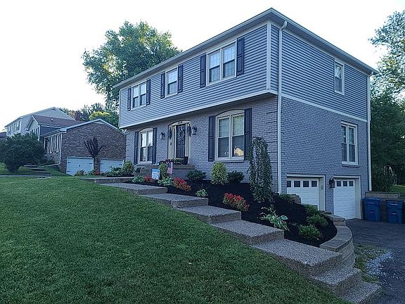 Call (502)939-3136 to see. This home has 4 bedrooms, 2.5 bathrooms with a traditional floor plan. First floor has a Front formal living room and a large family room with fireplace in the back. The dining room is conveniently located off the kitchen and there is a 1/2 bath on the first floor. Upstairs the oversized master bedroom with walk in closet and master bathroom. Down the hall are 3 more bedrooms and a full bath. Hardwood floors throughout except for two of the bedrooms. The kitchen remodeled in the last 4 years. Floors refinished on main level in 2016. New paint throughout in 2018. A complete remodel of the outside with new siding, gutters, shutters and downspouts in 2019. The brick exterior was painted in 2019. New heat pump system (inside and out) in 2018, New garbage disposal in 2020. Brand new expanded custom built deck in 2019. Retaining wall refinished to make easier access turning into garage in 2019. Custom built pantry added in 2020. Kitchen cabinets professionally painted with new backsplash and hardware in 2021. Partial basement with vinyl plank flooring in front portion, laundry room off of the basement area is unfinished. Large custom built-in playhouse that could be used for a large closet in basement.