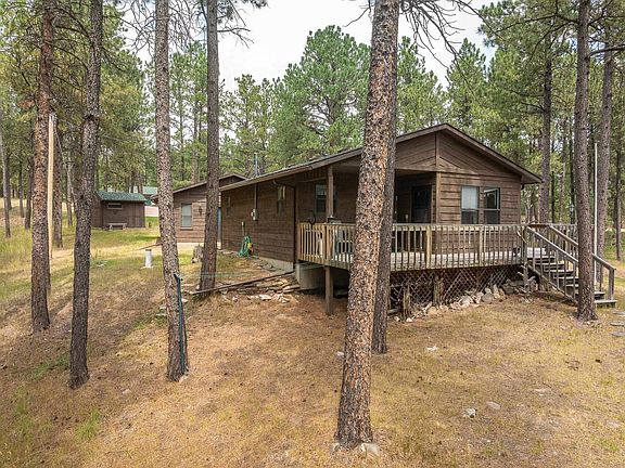 Cute and cozy, cabin style home at the north edge of Custer. Located in the beautiful Buckhorn Estates Subdivision on 3.6 treed acres. Two bedroom - 1 bath. Separate sleeping quarters/bunkhouse built in the detached one garage. Open - wrap around deck. Storage building/shed. Rock outcroppings. Great retirement home or that Black Hills getaway that most of us dream about. Protective covenants in place to protect your investment. Property borders the Custer City limits.