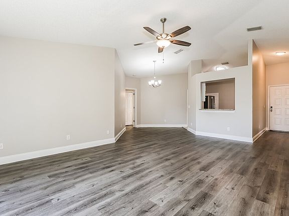 Enjoy the beauty of Riverview, FL in this renovated four-bedroom, two-bathroom, ranch-style house. The neutral palette and modern fixtures provide a relaxing atmosphere in this spacious home. The open floor plan allows for convenient access between the eat-in kitchen, living room and dining room. Florida sunshine floods the home with the generous windows and sliding glass doors. The joint living room and dining room area feature stainless ceiling fans and chandeliers, along with access to the rear patio. The stainless steel motif repeats in the kitchen with the new appliances and fixtures. The updated master bathroom boasts accent lights and a ceiling fan in a contemporary stainless design while dual sinks with a cosmetic vanity space complete the en-suite bathroom. The large master bedroom has new carpeting and spacious closets. Call to schedule a tour to see this rental home for yourself.