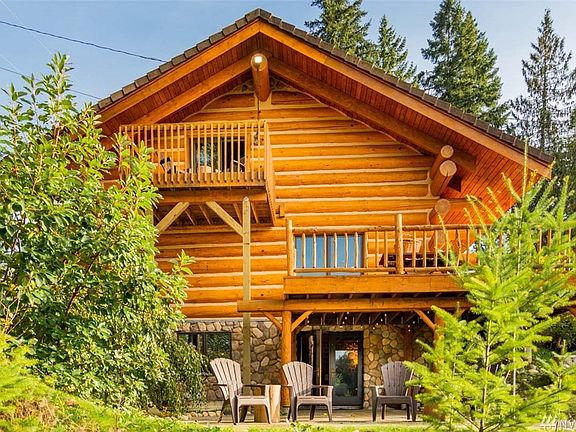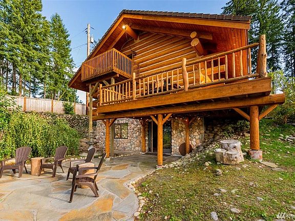 Sitting proud overlooking Offut Lake is a handmade masterpiece named Round Log Lodge. All interior siding, beams, and staircases were milled from old growth timber. Every log was individually selected and peeled by hand on the property, then fully sealed with Permachink Ultra 7 stain and Lifeline Advance clear coat. Nothing is left for you to do but enjoy the stunning open home plan, magnificent outdoor entertainment spaces, and the gently sloping trail to your private dock on the lakefront.