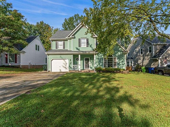 Fantastic Location! This 3 Bedroom + 2.5 Bathroom Home with a 1 Car Garage is such a great home, and the location is perfect with easy access to I540 and RTP. Located in the Harrington Grove Subdivision, you will have access to walking paths, a playground and an option to join the Swim and Raquet Club. Vaulted Ceilings welcome you in the Living Room with plenty of windows and a gas log fireplace. The Kitchen is SO spacious and has granite countertops and a large area for you to have a large table and even more room perhaps for an extra seating area or an office/homework station. The yard is fenced and there is a storage shed, so you can put your car in the 1 car garage if you want! The master primary bedroom has a vaulted ceiling and walk-in closet, tub and dual vanities. All 3 bedrooms are a good size. Such a great home! A MUST SEE!