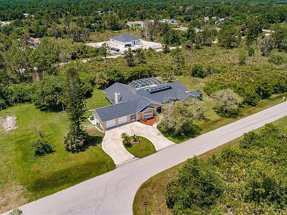 Dont let this one get by! Move right into this updated and tastefully appointed 4 bedroom, 3 bath pool home on almost half acre located in the quiet community of Gulf Cove. Theres plenty of room for family and friends with over 3,000 square feet of living space, both living and dining, family room, and kitchen with casual dining area. The great room concept with open and bright floor plan provides lots of flexibility in arranging your living space. Pocket sliders from main living areas provide unobstructed view of pool area bringing the outdoors into your home. This home offers new luxury vinyl flooring throughout, blinds, soaring vaulted ceilings and plant shelves, color accent walls, recessed lighting, new sinks and faucets, and new cabinetry in kitchen and baths. The great room has a large bump out wall with 5 windows with blind inserts and leads to the dining room and then through the pocket sliders to the pool area. Kitchen boasts warm wood cabinetry, granite counters and tiled back splash, pantry, and pass through window to lanai for easy entertaining. The kitchen and casual dining area have 19 ft ceilings with clerestory windows allowing in lots of natural light. Beautiful stone faade wood burning fireplace is the focal point of the family room. Master suite will be your private retreat with a bump out wall for extra living space, private access from the sliding doors to the lanai and pool area, 2 walk in closets, and spacious en suite bath with new wood cabinetry, granite counters, his and hers sinks, decorator fixtures, jetted soaking tub, and separate shower. The sliding windows off the jetted tub lead to a private 8 by 10 atrium. All bedrooms are spacious and have bump out walls and walk in closets. The 4th bedroom has private access to a bathroom and entry to the breezeway. Perfect for a private guest suite! 2nd bath has direct access to pool area. So no more puddles in your home. Dedicated laundry room has plenty of room with built in wood cabinetry, work counter, pantry, utility sink, and access to the breezeway leading to the garage. Entertaining around your pool will be a pleasure on your 40 by 13 lanai and 40 by 24 newly resurfaced pool deck. Other features include new dual AC systems installed in 2021, newly installed roof, central vacuum, public water, new hot water heater in 2018, and 7 by 7 vinyl shed for extra storage. Oversized garage completes the package with workshop and is connected to the breezeway leading to home. Beautiful curb appeal with circular drive, double door front entry, and mature trees. Proximity to waterways, local beaches, dining, shopping, and golf courses makes this property ideal for the Florida lifestyle. Also, easy access to public parks with bike and walking trails and picnic areas, and boat ramps providing access to many waterways, the Peace and Myakka Rivers, beautiful Charlotte Harbor, and the Gulf of Mexico. This home was built for entertaining family and friends.