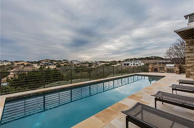 Barley Pfeiffer designed GREEN home. Elec/Gas avg under $120/mo. Transitional architecture. Open Liv/Din/Kitch. 2 Masters on Main. Exercise space in Master. Planning Center. Nuvo sound system in all rooms & outside. 1200+ bottle temp. controlled Wine Cellar. Pool Bath. Outdoor shower. 3 Beds and Game Room up. 2 screened porches- 1 w/ Fireplace. Detached garage. Backyard fire pit. Panoramic VIEWS of pond & Barton Creek preserve. 24 hour guard gated. Great neighborhood amenities. Award winning LT schools.