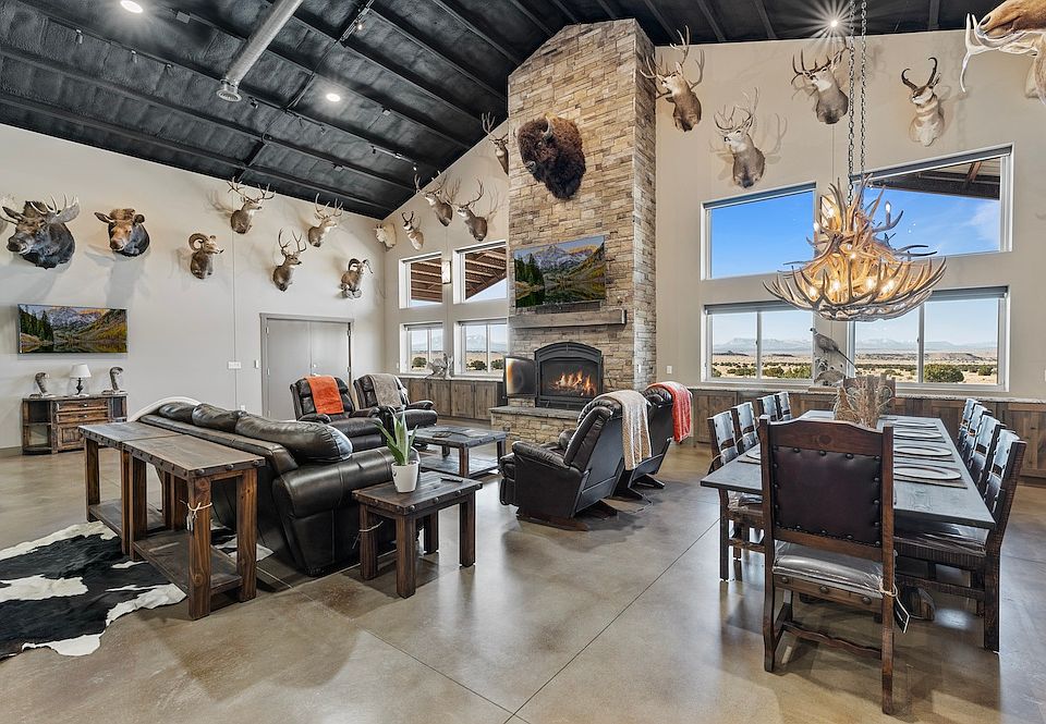 Discover E3 Ranch: Walsenburg- an incredible custom-built luxury Barndominium surrounded by nearly 90,000 acres of pristine private ranchland. This exceptional property offers unparalleled craftsmanship, modern convenience, unique amenities, and breathtaking panoramic mountain views.Step inside the main home to experience high-end finishes, including premium Level 5 granite countertops, custom cabinets, and top-of-the-line appliances. The spacious living area is anchored by a massive 44†Acucraft Hearthroom stone fireplace, perfectly framed by a large bank of windows showcasing the stunning landscape with a Front Range Mountain Backdrop. Fisher's Peak, the Spanish Peaks, Greenhorn Mountain, and Mount Mestas, are just a few of your front-row notable peaks along the Sangre De Cristo and Wet Mountain Ranges. For added comfort and efficiency, the home features electric window blinds, strengthened security entrance doors, premium flooring, and multiple large Big Ass brand fans.The expansive 16-foot-high walls are fortified with 5†closed-cell spray foam insulation and finished with half-green OSB and drywall for maximum durability. A versatile 1,000 sq ft open loft area overlooks the entire kitchen and living area, ideal for a pool table, office, game room, or additional bedroom, while also connecting to the shop's lofted storage area. The shop, attached to the main home, features two 12'x14' electric pull-through doors, a Timberwolf wood stove, a full bath, laundry facilities, and ample lofted storage space.Outdoors, the property offers expansive covered patios and a new 6-person Dimension One spa, providing the perfect setting for relaxation and taking in the serene mountain views. A FAA-approved helipad adds a unique touch of convenience and accessibility. Water resources are well-managed with a 60,000-gallon storage system controlled via WiFi, supplemented by a water well and runoff. Propane needs are met with a 1,000-gallon tank for the main house and a 500-gallon tank for the guest house, both buried for discretion.Additional features include four 20' shipping containers with shelving for storage, 500-gallon diesel and 500-gallon gas tanks with electric pumps secured on a concrete pad, and a 400-amp electrical service with a 50-amp RV connection. The entire property is secured and monitored through Google Nest and Simply Safe systems, ensuring peace of mind.Whether you're seeking a private retreat or a luxurious, fully equipped mountain property, this Luxury Barndominium offers it all. With unmatched seclusion, expansive views, and exceptional amenities, this is truly a one-of-a-kind opportunity. Please contact listing broker to arrange showings, as current owners occupy the residence full-time.