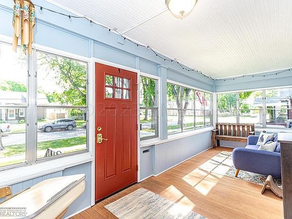 Charming character home with so many updates. Relax in the adorable three season front porch. Beautiful wood floors throughout. Nicely updated kitchen and bathroom. Entertain friends in the dining room. Second floor is so roomy with loft space, bedroom, and much needed storage in the dormers. So many updates including windows, electrical, plumbing, garage door, braced basement, interior drain tile. Private fully fenced yard with patio.
