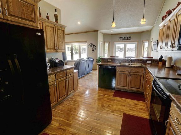 Gorgeous ranch home located in a cul-de-sac in SE Minot, near John Hoeven Elementary School. The visual appeal of this home is meticulous inside and out. Seamless siding, great landscaping, manicured lawn, a beautiful white maintenance free fence, this home is move in ready! An extra large driveway adds additional parking, or RV parking. Entering the home you are welcomed by a beautiful vinyl plank floor and an easy flow to every room. High grade Oak woodwork. Oak crown through the kitchen, living and dining room. The main level features the Master bedroom complete with a master en suite, walk in closet, and linen closet. There are two more large bedrooms on the main floor that share a full bathroom and linen closet. The family room flows nicely to the dining area and kitchen. Through the sliding glass doors in the dining area is access to the stamped concrete patio and beautiful back yard. Back inside the kitchen has a high grade oak cabinets, seating for three at the kitchen peninsula and a nice flow to it. Directly off of the kitchen, you'll find the main floor laundry. Downstairs, say wow to a grand entertaining space with a fantastic bar accommodating seating for 5, Granite countertops, and maple cabinets. There are two more large bedrooms on this level. The bedrooms have deeper window wells, for increased safety and natural light. Another full bathroom serves the basement area. Good storage space on this lower level. The garage has 8 foot tall garage doors to accommodate larger vehicles with ease. Pet free home!