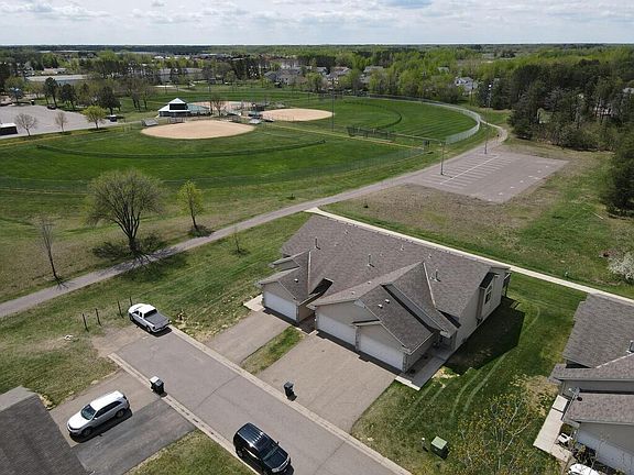 End Unit Townhome, South facing & full of sunshine. This home is located at the end of the road with your very own private driveway and no through traffic. You are steps away from the sidewalks and trails of Mark Park. Watch the Ball games from your private balcony too! Home offers vaulted ceilings, open concept, walk in closets & two full bathrooms. Deep garage for your workshop space. Large amounts of storage in the Lower Level too. Enjoy easy living because the association takes care of your lawn care and snow removal. The home comes with new siding and a new roof.