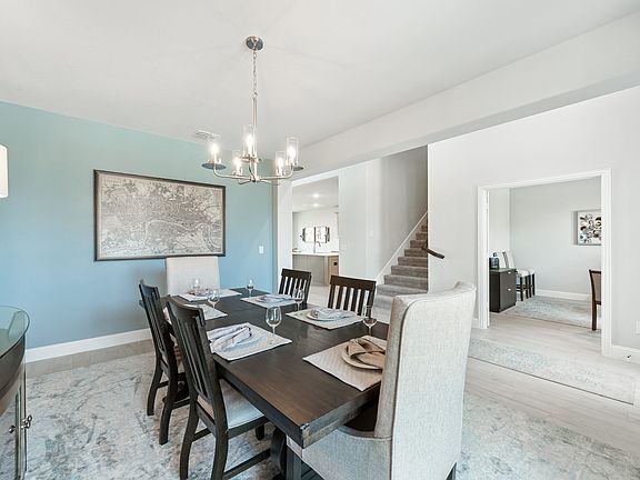 MODEL HOME FOR SALE! Ready to take on its next chapter, Bloomfield’s beloved 'Spring Cress II' model is now available—offering a rare opportunity to own a designer showcase home, filled with stunning upgrades and move-in ready charm. This plan provides 5 large bedrooms, 4 baths, 2 dining spaces, a Game and Media Room combo, and a private Study. 3 of the secondary bedrooms are upstairs while the Primary Suite and another bedroom can be found on the first floor. Step into serenity with light driftwood-look tile floors, dreamy dusty blue accents, and champagne shaker cabinets—perfectly tied together with custom drapes, accent walls, and cozy window seat cushions. From the many large windows throughout the home, you can enjoy the privacy of a large corner lot on what was once 'model row' - likely the most convenient street to get in & out! Especially convenient location for students, with all 3 schools within minutes and the middle school nearly next door! As you explore, delightful details and upgrades are found at every turn like built-in storage, upgraded tile, quartz countertops, contemporary silver fixtures, bench seats, bonus electric work, upgraded doors (study, front, garage), and premium landscaping front & back! Easy commutes, picture-perfect homesite, and professionally designed interior - what more could you ask for? Open daily to tour and staffed to help with questions!