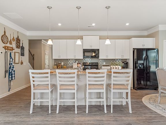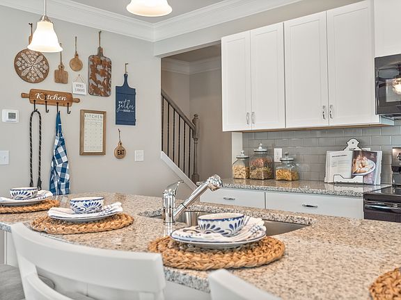 The Braselton by Smith Douglas Homes. Outdoor lovers prefer the Braselton for its unique rear corner covered porch, directly accessible from a large eat-in kitchen overlooking the family room. On the second floor, an over-sized loft separates the private owner's suite from two secondary bedrooms, with the option of converting this space into a fourth bedroom.