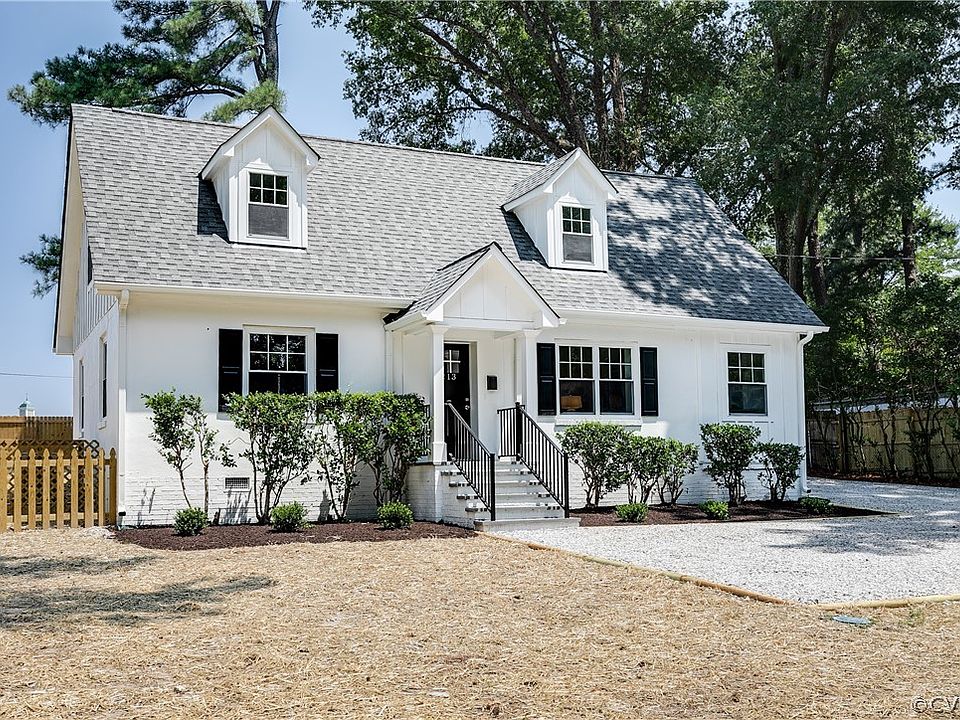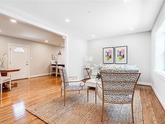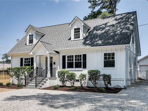 Welcome to 1213 Blakemore Rd, a beautifully renovated Cape Cod-style home that combines modern amenities with 1950s charm. This turn-key property was taken down to the studs and rebuilt. The home boasts a 2nd story addition with charming board and batten siding, new roof, windows, HVAC, plumbing, electrical, hardwood floors and more! As you arrive, you'll be greeted by a welcoming bluestone covered front stoop. Inside, the bright living room boasts new hardwood floors that extend throughout the home. The spacious living area seamlessly flows into the dining area and eat-in kitchen. The kitchen is a chef’s dream, featuring quartz countertops, stainless steel appliances, and a walk-in pantry. An island with barstools and a dining area provide ample space for entertaining. Down the hall, you’ll find a fully renovated bathroom with quartz vanity and tiled shower. There are two bedrooms on the first floor, perfect for a second living space and a home office. Upstairs, the second-floor addition includes a third bedroom, a hall bath with a walk-in shower with bench seating and double vanity, and a large primary suite that spans the entire side of the house. The primary suite includes a cozy living area and a spacious closet. A convenient walk-in laundry room completes the second floor. Step outside to enjoy the newly finished deck off the kitchen, perfect for outdoor dining and relaxation. The property also features a 20x20 detached garage with new garage door and direct access to the driveway. Situated in a prime location, this home is just around the corner from Powhite Park, The Veil Brewery, Little Nickel, and Forest Hill Park. Discover all the stunning features this home has to offer!