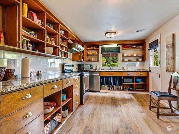 Charming mid-century rambler offers spacious living with 6 bedrooms, 3 full bathrooms and an income-generating attached dwelling ideal for Airbnb. Vaulted ceilings in the primary bedroom add allure, complemented by two cozy fireplaces throughout. Character abounds with arched doorways, enhancing the home's unique appeal. Perfectly situated for investors or those seeking versatile living options, this property promises comfort and potential in a desirable location in Olympia nearby to amenities.**Attached ADU has been a profitable Airbnb (over $30K gross) for the current owner. 2nd parcel (Vacant) could be sub-divided for another dwelling. Greenbelt buffer exists on 2nd parcel and it borders the Woodland Trail.