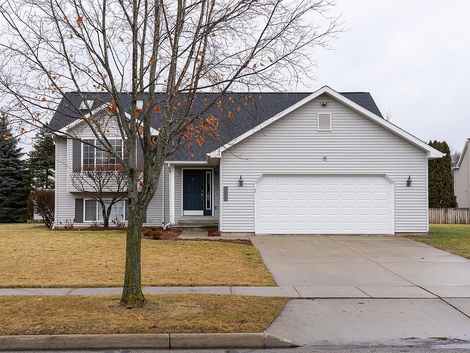 Spacious 4 bed/2 bath home with @2,500 square feet in a subdivision near Central Michigan University and the Mt. Pleasant High School. Open concept kitchen/family room with vaulted ceilings, skylights and recess lighting keeps this area bright all day. The kitchen features stainless steel appliances, tile backsplash and beautiful granite counters. From the dining area, you can step out the patio door onto the deck that overlooks the backyard. The primary bedroom is spacious enough to set up an office or sitting area and has an extremely generous walk-in closet. The shared primary bathroom features a walk-in shower, jetted tub and a beautiful ceramic floor. Laundry is on the same level as primary bedroom and includes a new in 2021 front load washer and dryer. The main level is very bright as it has daylight windows and features three big bedrooms, a living area and a full bathroom. The fourth bedroom would also make a great home office or gym! The garage is not only heated but has hot and cold spickets so you can wash your car anytime! It also has accessible attic space for additional storage. Garden shed and playset in the backyard are included.
