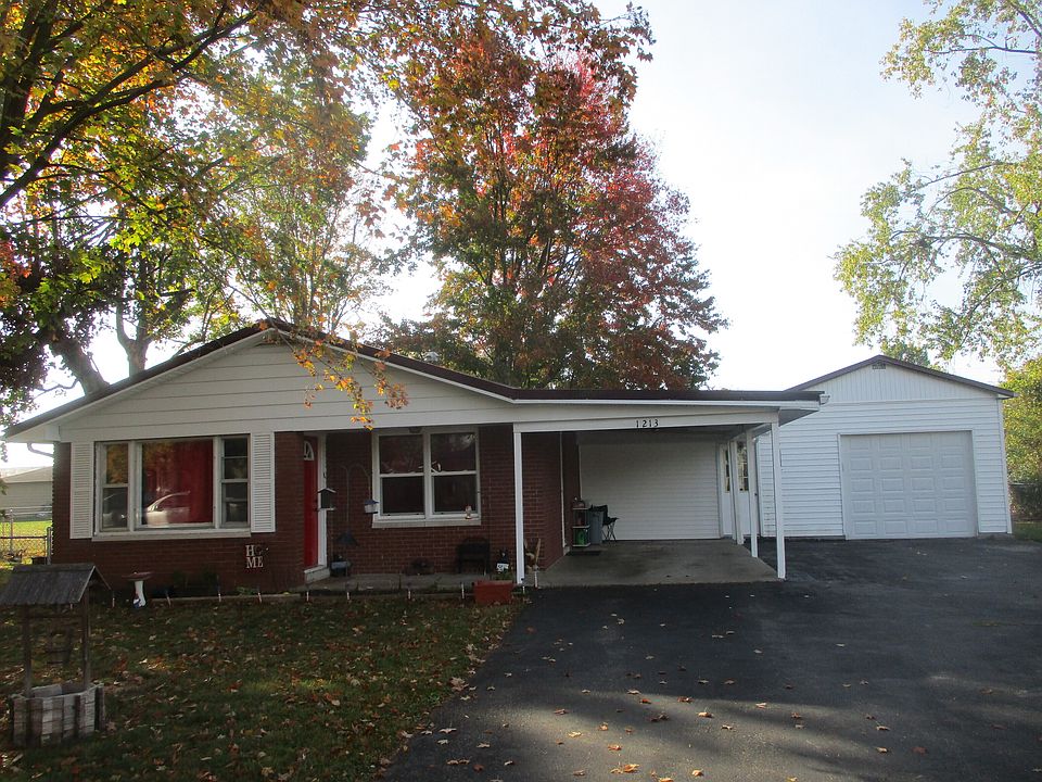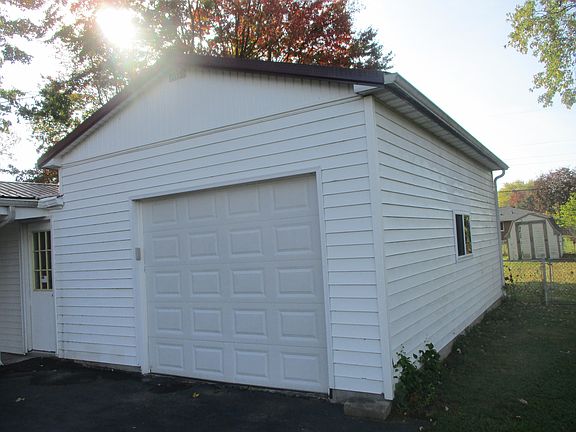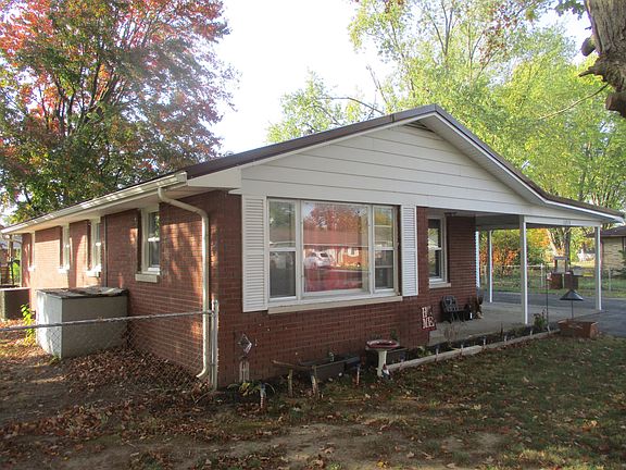 Home has been remodeled, New paint, flooring, kitchen and baths. Very nice large yard with mature trees and a very large pole barn type garage with one door but could hold more. And there is a carport attached and has a paved drive.