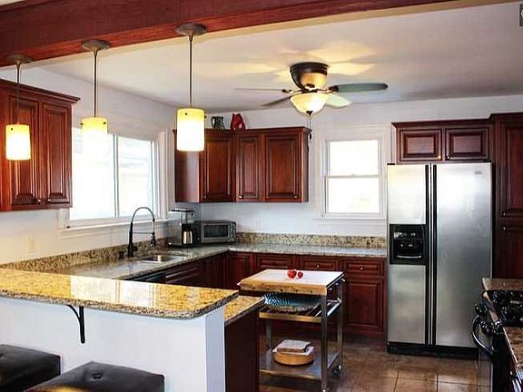 Beautifully remodeled in-town bungalow. This adorable 3 bed, 1.5 bath home was renovated just two years ago & includes refinished hardwoods, a detached garage, a fully-fenced yard, fresh paint inside & out & low-maintenance landscaping. The kitchen has been completely updated with elegant granite counter tops, Italian travertine tile & distressed cherry cabinets. The full-bath has also been fully restored with a subway tile shower & mosaic tile flooring. The larger, third bedroom is currently being updated with new flooring & neutral paint.It looks out onto the backyard & covered patio. From the light fixtures to the hardware, everything is fresh & contemporary. Open House this Sunday 23rd 2-4PM!