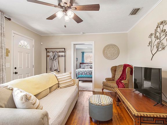 CURRENTLY UNDER CONTRACT- SELLER WILL CONSIDER BACK UP OFFERS! This upgraded cottage style home sits on a .25 acre lot with new-school features and a touch of that old-school charm! As you enter the front door, you'll notice the open concept living space with beautiful hardwood flooring throughout. Overlooking the living room is the kitchen with ample counter space, custom cabinetry, and stainless steel appliances. Off the kitchen lies an adorable sunroom that is a gorgeous addition to the interior of this home. The windows in this room allow a substantial amount of natural light! Yes, it does have A/C and Heat, as well! Bedroom one and two are spacious with a full bath between them. Make your way to the main suite of the house and fall in love with the massive amount of space this room has to offer. You'll also find the laundry room conveniently located inside the main suite in its own corner. I mean it- this room is great! Out back, you'll enjoy the fully fenced back yard with a nice deck for those Summer cook-outs with guests! The front yard is also very spacious and it still contains beautiful trees that also provide a great amount of shade to this property. This home is located only minutes from shopping, schools, and restaurants! Sitting only 4 miles from the Hathaway Bridge, this house is a straight shot to PCB! Dont miss out on this beauty!