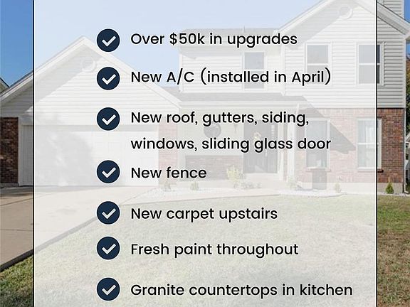 Welcome to this meticulously remodeled 3 bedroom, 2.5 bathroom home offering modern upgrades and a comfortable layout. Over $50k in thoughtful updates inside and out! This property boasts curb appeal with brand-new windows, siding, roof, gutters, and downspouts. Inside, fresh paint brightens every room, while updated bathrooms and new carpet upstairs create a cozy, modern atmosphere. Enjoy cooking in the updated kitchen with sleek granite countertops and stainless steel appliances. The finished basement offers additional living space, ideal for a home office, rec room, or gym. A brand-new AC unit ensures comfort in every season. Outside, the large patio offers the perfect spot to relax or entertain, overlooking a massive, fully fenced yard. Don’t miss out—this home is truly turn-key and waiting for you to move in!
