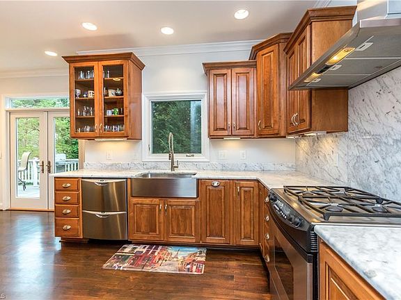 Modern kitchen with stainless appliances and custom cabinetry. Wood floors, large pantry, tray ceiling in master, remodeled bathrooms to include the master bath. Low maintenance exterior with amazing landscaping provides privacy and year round displays of color. Multiple level deck with near by water feature and koi pond. Two car basement garage with work space. Move in ready without the need to update.
