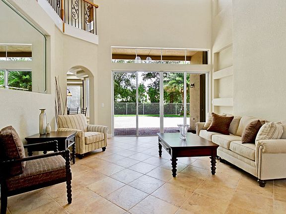 This beautiful, well-built Centerline home is constructed with concrete up to the roof on an over-sized, elevated lot. Enjoy your fenced-in yard and large paver patio. Lots of room for a pool. The living room boasts a beautiful coffered ceiling while the dining room, family room, and kitchen have lovely tray ceilings.The first floor master bedroom suite includes a large walk-in closet with built-ins while the master bath offers a Roman tub, a separate frameless shower and lavatory, plus double sinks. The second floor has 3 bedrooms with 2 Jack and Jill baths, a spacious loft, and desk nook. Beautiful tile and wood flooring throughout. Plantation shutters. This immaculate home is located in the desirable 441 area and close to shopping, schools, equestrian activities, restaurants, and parks.